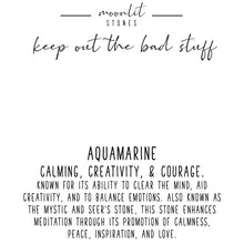 Stone: Semi Precious aquamarine, light blue color, round, 8mm